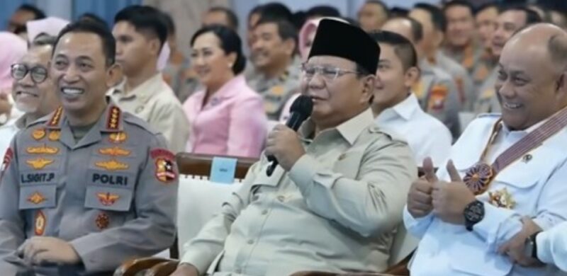 “Saya tadi bertanya, apakah Kapolri sudah menerima Mahaputera? Belum. Karena itu, saya yang akan memberikannya,” ujar Prabowo.
