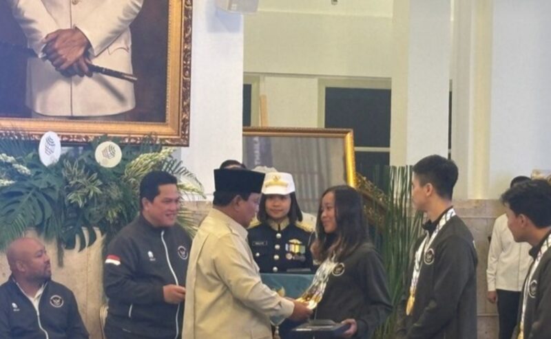 Jakarta – Sorotbrita.com ,Atlet nasional Martina Ayu mencuri perhatian Presiden Prabowo Subianto saat menerima bonus atlet SEA Games 2025 di Istana Negara, Jakarta. Martina sukses mengantongi lima medali emas, jumlah yang membuat Presiden berhenti sejenak untuk menghitungnya satu per satu.