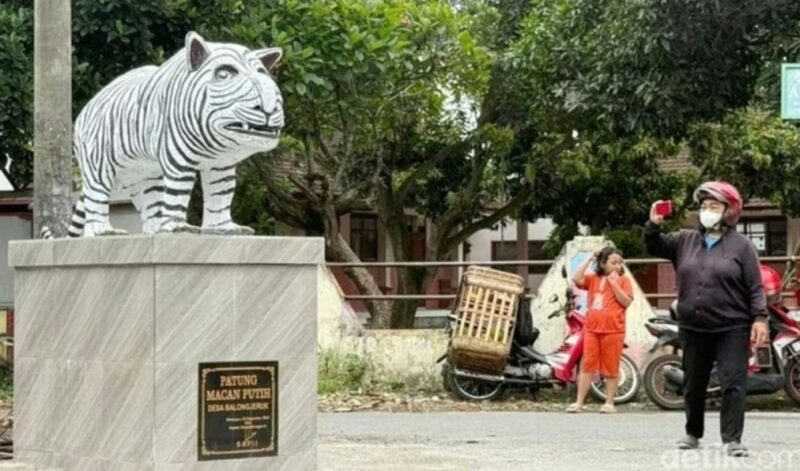 Kediri – Sorotbrita.com ,Patung Macan Putih di Desa Balongjeruk, Kecamatan Kunjang, Kabupaten Kediri, sempat menuai cibiran warganet karena tampilannya yang gemoy dan imut. Namun di balik ejekan tersebut, patung viral ini justru membawa berkah besar bagi perekonomian warga desa.